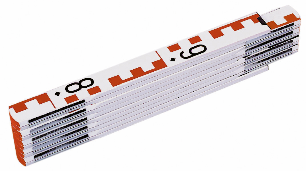 Made from the finest quality wood, with strong joint springs. Front side: Levelling graduations (E reading) 1 m black, 1 m red Reverse side: mm graduation in black Available in 2 m lengths.