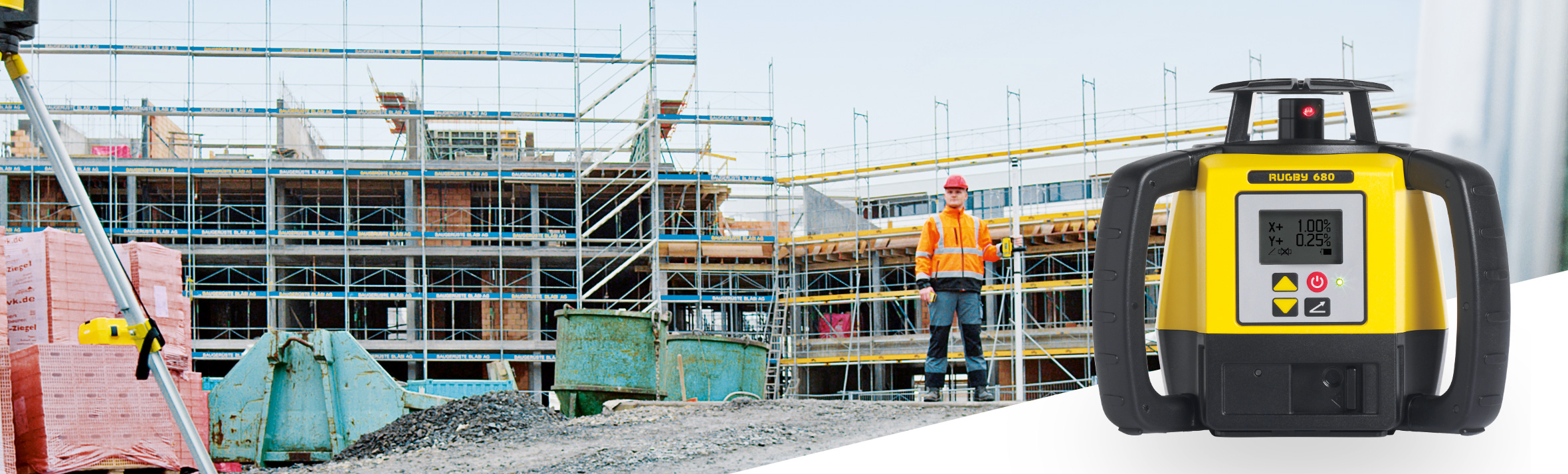 Bring simplicity to construction applications with the Leica Rugby 680 semi-automatic grade laser. Designed for contractors who do mostly flat work but occasionally need to create single or dual slopes, the Rugby 680 construction laser is easy to use and effective in all levelling and grading tasks.